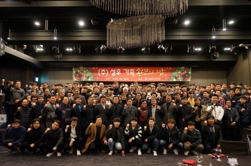 단체사진 '2018'년 10년 장기근속자 포상 '2018'년 올해의 우수팀 경품추천 - 행운상(휴지, 라면) 경품추천 - 3등상(쌀10kg) 경품추천 - 2등상(에어프라이어) 경품추천 - 1등상(공기청정기) 송년회 특별 공연